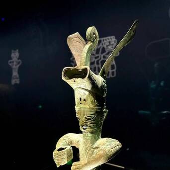 Tips: 走路线1有一条近道可以少走一些路,“三星堆”三个大字旁边有个小门可以穿过去,进去后左拐继续走。略过的是讲解三星堆刚被发现的部分介绍。