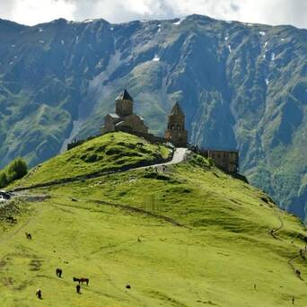 格鲁吉亚虽不大,但景点之间的路程较远且路况险,特别是徒步更不建议自驾,我跟的团有中文领队+当地格语&俄语双语向导,全程包车住就很安心~
